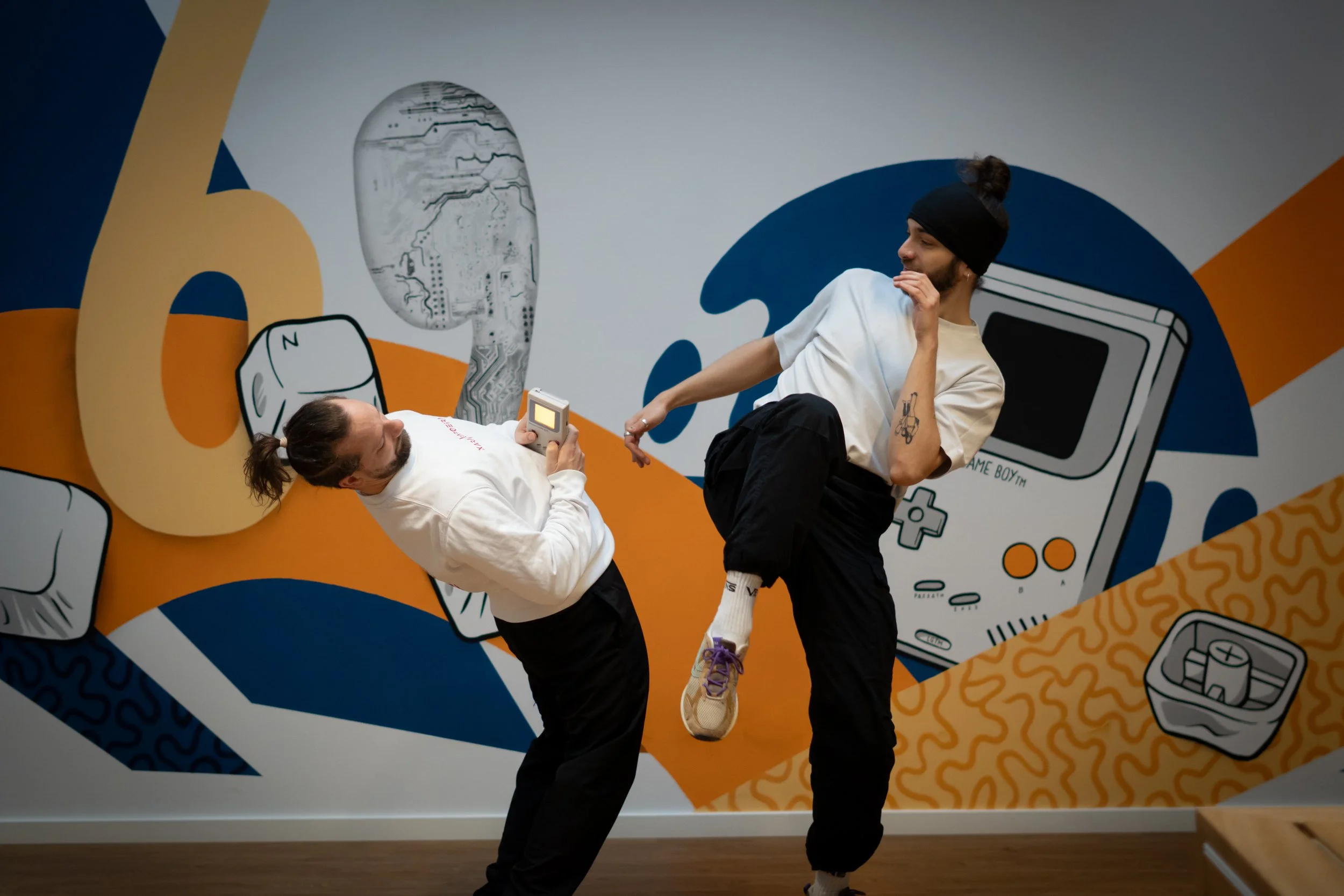 In der Regel wird der Unterricht auf Deutsch oder Englisch abgehalten, da Frankfurt eine internationale Kultur hat und die deutsche Sprache für manche noch schwieriger zu beherrschen ist als ein Handstand. Die Unterrichtssprache hängt von den Teilnehmer:innen ab, und eventuelle Sprachbarrieren werden durch Bewegung und Musik schnell überwunden. Der Trainer spricht fließend Deutsch, Englisch und Portugiesisch.